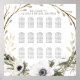 Hand painted white anemone flowers are paired with earthy neutral leaves and foliage along with pussy will branches. Table seating chart that includes seating for up to 150 and 15 tables. You can delete a table aor change the number of guests at your tables using the customize it feature. Art copyright, Audrey Jeanne Roberts.