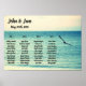 Seagull theme seating chart poster, template text for four tables with guest names.