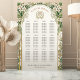 This beautifully designed wedding seating chart blends the elegance of Art Nouveau with a vintage floral motif. Featuring intricate golden accents intertwined with lush greenery and delicate white flowers, this foam board seating chart provides a stunning way to guide your guests to their seats. The luxurious color palette of ivory, forest green, and gold complements a classic or garden-themed wedding. The centerpiece showcases a personalized monogram framed by a wreath, adding a touch of refined elegance. Perfect for couples who love vintage, nature-inspired aesthetics, this seating chart ensures your special day is beautifully organized.