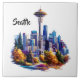 This lovely ceramic tile is shown with a Seattle skyline watercolor art print.