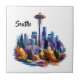This lovely ceramic tile is shown with a Seattle skyline watercolor art print.