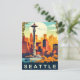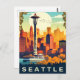 Seattle, tourist boat is cruising the Duwamish river, travel poster