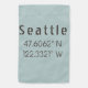 Seattle Washington latitude and longitude map coordinates in distressed urban fonts give this throw a modern urban look