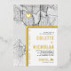 A unique wedding invitation card tailored to a wedding event in the city of Seattle, Washington. It features an accurate topographical map of the city. It also features several special features that make an impression on your future guest, including the names of the bride and groom, and the city name in gold foil, including a gold foil heart symbol that pinpoints your location of love in the wonderful city. The heart symbol can be replaced with a variety of symbols. ---> ( ♥, ★ , ✘, 〇, ✔, ▼,➤ ) The city map is on the front and reverse sides and can be scaled and moved around. The invite also has an optional spot for the unique latitude and longitude coordinates of your city in gold foil. All elements of this invite are unlocked, so have fun being creative and making it unique to you!.