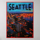 A dramatic vintage style image of Seattle's beautiful downtown skyscrapers and buildings with a water view.
