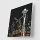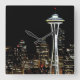 Seattle skyline at night, with Space Needle. Square Wall Clock