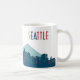 Design featuring Seattle skyline with silhouettes of classic buildings and cultural landmarks.