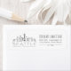 This label features a stylized illustration of the city's unique skyline with its name underneath.