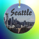 Seattle Washington skyline on this photo commemorative ornament. The space needle is at the left and Mt. Rainier just visible in the background. Celebrate memories of your vacation or a place that you love. Choose your ornament shape.