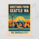 Celebrate the charm and creative spirit of the Pacific Northwest with this vibrant artistic rendering of Seattle, famously known as The Emerald City. Designed in a bold 1930s retro travel poster style, this colorful postcard blends vintage nostalgia with stylish modern graphic design for a truly eye-catching keepsake.