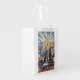 I own a lot of reusable grocery bags, but this one holds its box shape and simply stands up on its own even if there is nothing in it. Its stiffer than your regular reusable bag too, and the material is water resistant. I poured water on the exterior and it didn't penetrate inside to the other side. I'm buying a couple more. Wish I knew how durable these bags were or I would have purchased a few more with my initial order. I also like how it folds and buttons up when not in use, making it easy to put into a handbag or luggage. I haven't used this bag yet, as I purchased it for travel use, like when you're at the airport and need to small sturdy bag to place any airport purchases in, like food, souvenirs etc. I can tell you when you first see this bag, it looks very cheap, but after closer inspection of the material and the seams its a very sturdy reusable bag. I tested it out by putting some really heavy objects inside and I could not observe any stress to the bag at all. Another thing I like about it, is the fact the medium size that this is makes it easy to just carry it in your hand without the bottom of the bag scraping the ground, like most other bags do when you're short. That alone, deserves 5 stars. I just wish there were more colors to choose from! The PDX Airport Carpet printing looks just like the photo, and using this bag during travel might be a conversation piece when/if a native from Oregon happens to see it.