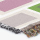 A quality printed throw has its advantages. This is a much finer weave throw than its loopier cousins, and though lighter, it is worth the investment for custom room accessorizing. The back is much prettier than the typical brown, and the fringe on the long sides very vivid, the selvage nicely done. Before photographing, I washed the throw in cold water, delicate, with a thicker woven throw the same size. On tumble dry low, this throw was dry in half the time as the other. This is a very practical quality if you use throws for furniture covers or to wrap up in frequently. The sleekness of the fabric makes it a great layer for accenting or protecting without the feeling of sitting on too much stuff. Perfect for napping or when you feel a light chill coming on. The color printing is beautiful and on this fabric, matched the design and color of my Photoshop image. This is an advantage for blending room fabrics and colors. The fringe on the short sides prints the colors from the design image and therefore varies from the side fringe. I streaked a white fractal line through the plaid pattern to give the illusion of weaving. This printed as crisp as an illusory thread, and put some white in the short side fringe, showing another advantage of print vs loomed- for artistic purposes, line lines, detail, and color integrity can be planned and preserved. My loomed throws have color limitations and more of a needlepoint texture. Print throws reproduce an exact image. The throw felt a little stiff straight out of the package, but this went away in the first delicate wash. Of course I searched the wash water for ink or bleeding and there was none.