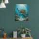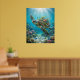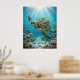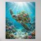 A graceful seaweed turtle glides through a clear tropical tide garden where marine serenity meets botanical wonder. Realistic sea turtle anatomy blends with seaweed fronds, ocean textures, coral accents, and elegant shell patterns formed from living aquatic foliage. Sunbeams stream through turquoise water as bubbles, fish silhouettes, sand, and drifting seagrass create soothing depth. This premium coastal fantasy design brings peace to bathrooms, spas, beach homes, or gift collections. Perfect for turtle lovers, ocean decor fans, and relaxing seaside interiors.