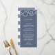 Coastal chic wedding menu in elegant slate blue-gray features your starter courses, entrees and desserts in white lettering, with your names and wedding date topped by a white nautical rope illustration. Coordinates with our Seaworthy collection for nautical, beach or summer weddings and celebrations.