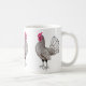 Original fine art design of silver Sebright Bantam roosters by designer Carolyn McFann on quality mugs for chicken fans.