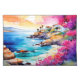 "Secluded Beach". A Secluded Mediterranean beach with a tranquil blue sea is framed by pretty pink and purple blooms. A quiet and relaxed place for contemplation.