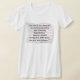 My overall review is that the T-shirt is nice, it fits true to size however the font is significantly smaller than advertised and you can't read it. The printing is unreadable and there is a strain to read it. It does not look like the advertised product. Maybe the shirt color is darker or a larger more visible font should have been used. Photos with and without flash and font is barely legible.