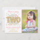 Second Birthday Invitation Girl Pink Gold Mint Two