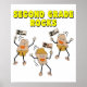 Second grade rocks text with three happy rocks holding 2nd grade flags is a funny education gift design for parents, elementary school teachers and students.