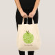 A bag for 2nd grade teachers featuring an illustration of a green apple with oversize white text "Second Grade Teacher" in white. Personalize the brown text below with your name.