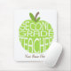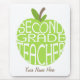 A mousepad for 2nd grade teachers featuring an illustration of a green apple with oversize white text "Second Grade Teacher" in white. Personalize the brown text below with your name.