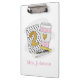 Grab this clipboard so your favorite teacher can have a stylish way to organize papers outside the classroom. Pattern has white with black polka dot notebook with a gold two, heart coffee, ruler, pen and pencil. This white with black polka dot notebook design can be found on other items in my shop, PageCreativeDesigns.