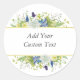 Create your own custom sticker with boho-style designed with delicate wildflowers in mixed watercolor hues of purple, blue, yellow, and white with vine-like greenery and forest twigs as accents. A suite of matching products is available to carry out your garden theme. Replace the text shown in the design template with your desired text. To change the font style, select "customize" and choose from a wide array of font choices.