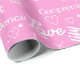 Perfect for wrapping an engagement, wedding, or anniversary gift, this gorgeous gift wrap features a typographic pattern of different words associated with a successful relationship. The pattern is on a pink background, but you can customise and change this to suit your own taste.