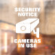 Security camera notice warning static non adhesive sticker Window Cling. Custom signs for home, shops, museums, business, office, workplace, school, store, company, hospital and other public places. Make your own signage with secure symbol. Non adhesive. Sticks to window. Caution sign for thieves, burglars, customers, clients, visitors, guests etc. Face outwards or inwards, printed on one side. Anti theft design displays.