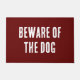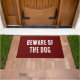 Beware of the dog. Warning on a doormat. Keep safe from intruders by giving a warning about the dog.