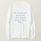 I love this shirt. I had written to the artist asking her if this picture was available on a shirt, and she wrote me back telling me where I could find the shirt. These shirts can be custom made to have a different saying. I loved this saying and went with it. The artist wrote me back later to tell me that she had seen my order go through. How's that for service? Pretty special. It's just as displayed. Perfect!