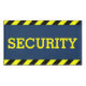 This identification tag features a "SECURITY" title across the center, printed in a bright yellow font over a navy blue background. A yellow and black striped caution strip is placed across the top and bottom portions. This tag will help to easily identify your security guard employees at your company.
