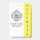 This identification badge for a security guard or employee features a white background with a sample logo in the center. You can personalize the ID badge to display your own company, business or organization logo, or your own custom image. There is an area beneath the logo to print an employee name or other text. The word "SECURITY" is printed along the right side over a bright yellow banner. The black text on yellow allows it to be easily seen and recognizable. The back of the ID badge has a black background with white text where you can include your company phone number or other information.