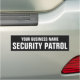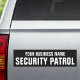 Professional security patrol bumper magnet, personalized with your business name or organization. This modern template is ideal for individuals and companies, such as mobile security guard services, private firms, residential communities, event security, and more. Printed colors: black and white. Additionally, you can customize the background color by using the design editor tool. Shop the collection for more popular security product ideas and supplies for sale online.