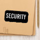 Security Patch. Black with bold white letters and black outer edge sticking. This security id patch is a perfect identification patch for tactical vests, jackets and uniforms so you will be clearly identified as security officer or law enforcement . See our collection for police patches and personalized id patches. Choose from iron on, velcro or adhesive. COPYRIGHT © 2020 Judy Burrows, Black Dog Art - All Rights Reserved. Security Patch