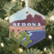 Sedona, Arizona travel illustration done in a retro style. Red Rocks, a winding river and cactus.