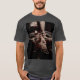 My 11 yo wore adult XL (5’7” 165#). The 8yo is small framed. She wore adult small and tied it in the back. Grandma wore adult large with long sleeve shirt underneath. Tall girl adult medium. Dark haired male adult large. Good quality dark Heather gray, Gildan brand shirt. -it was next up from basic choice and cost about $20 per shirt. Not too thick or thin. Washed and dried well, no major shrinkage. Not see-through. Can wear a bra under it fine. Screen print is just as shown and well done, front and back.