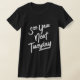 My overall review is that the T-shirt is nice, it fits true to size however the font is significantly smaller than advertised and you can't read it. The printing is unreadable and there is a strain to read it. It does not look like the advertised product. Maybe the shirt color is darker or a larger more visible font should have been used. Photos with and without flash and font is barely legible.