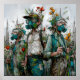 Masked and resolute, a trio of eco-activists stand among a bloom of wildflowers and steel. This gritty illustration captures the urgent spirit of regeneration and rebellion in a fragile world.