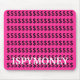A fashionable hot pink mousepad with black dollar signs and white ISPYMONEY logo.