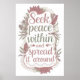 Embrace a laid-back vibe with this visually enchanting design featuring soft earthy tones and inspiring nature illustrations. The flowing handwritten quote seeks peace within and spreads it around, surrounded by delicate wildflowers feathers and mandalas that bring tranquility to your style. Perfect for those who cherish free-spirited living