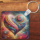 The key chain is made of metal and really sturdy. The flower design is really cheerful. The logo and colors are clear and crisp!