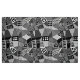 An original abstract pattern made up of triangles and rectangles decorated in various way which kind of look like buildings and houses