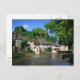 Postcard of the castle and the quaint historic village of Ségur-le-Château with its half-timbered houses alongside Auvézère river in Limousin, France.
