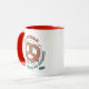 I was thrilled this came out so well. It is a very attractive mug with the colored handle and interior. Being able to personalize it was easy! It was designed for an end of the year thank you gift to the special recipient. perfect. Text lines up perfectly parallel to the top edge of the mug.