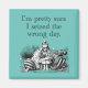 Carpe diem! Seize the day! But what if you seized the wrong day, and you're having a really bad day? Is it just bad luck or are you really a disaster magnet? Whatever it is, Alice in the illustration on this funny fridge magnet is right there with you.