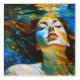 “Selene” - Women In Water. In this serene, colourful fine art women water scene, a beautiful woman with long red hair floats in a blue swirling sea. Sunlight dapples her peaceful face beneath the water's surface. With eyes closed and face lifted, she absorbs the light, embodying a strong, resilient, and inspiring figure in this multi-coloured picture.