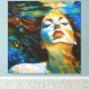 “Selene” - Women In Water. In this serene, colourful fine art women water scene, a beautiful woman with long red hair floats in a blue swirling sea. Sunlight dapples her peaceful face beneath the water's surface. With eyes closed and face lifted, she absorbs the light, embodying a strong, resilient, and inspiring figure in this multi-coloured picture.