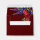 A self-addressed burgundy envelope with gold text featuring a burgundy and blue floral lining. The envelope is the appropriate size to fit 3.5 x 5" RSVP response cards.