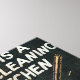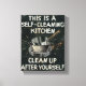 © Pela Studio / Wild Apple. A black and white retro image about kitchens. The sign says, "This is a self-cleaning kitchen. Clean up after yourself."